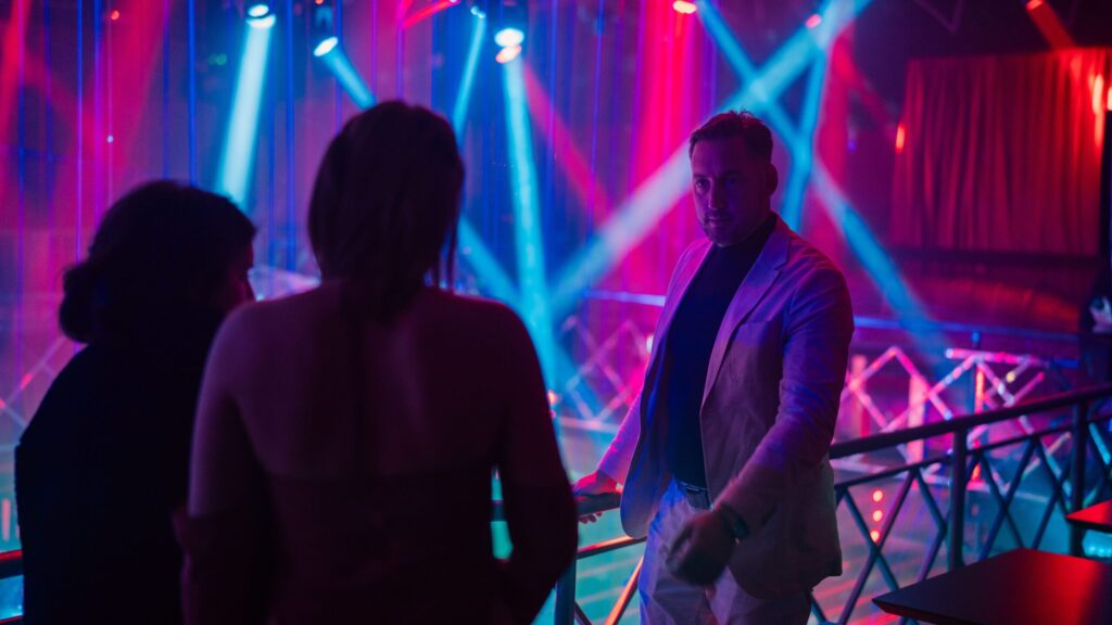 Muzika Skaja Viklera je odlična, više utopljena u pozadinu od one u SRPSKOM FILMU i funkcioniše kao puls filma, koji kuca zajedno sa scenama ili nadograđuje tišinu. Manje je tema koje se mogu izdvojeno slušati (ili ih se ja ne sećam), ali to ne znači da je skor manje kvalitetan – naprotiv! Takođe vredi pomenuti i pesme koje Radivojević veoma dobro upotrebljava u filmu. Tu je Alisa (za koju sam samo čekao kad će da se pojavi!) tokom scene u stanu mafijaša Najdana (Mima Karadžić), oca ubijenog guru-influensera/pedofila Bekse (Petar Strugar). Na splavu „Titanik 2“ (odlično ime!) se čuje turbo-folk pesma koju nisam uspeo da identifikujem (refren „Rodiću ti sina“ mi ne znači ništa), a tokom krvopljusa u poslednjoj trećini čujemo već pomenutu Stojnićevu „C’Est La Vie“. Film za celu porodicu – sa pevanjem i pucanjem!
